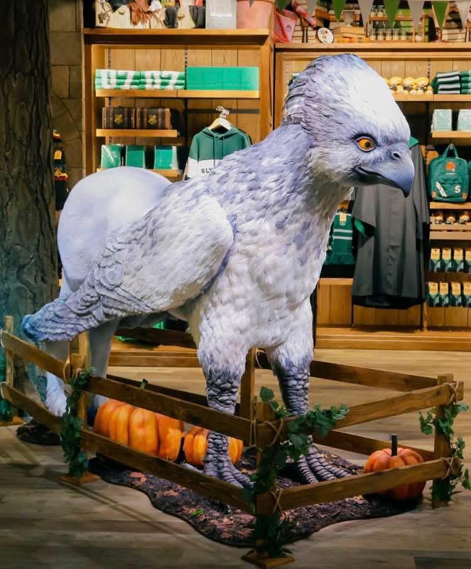 • Icono mágico: Buckbeak hace guardia: Una imponente estatua del hipogrifo Buckbeak preside un rincón especial de la tienda, recordándonos las criaturas emblemáticas del universo mágico.Essential Japanthe-leaky-cauldron.org