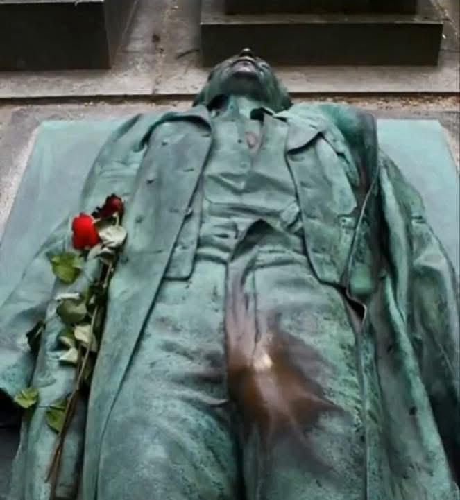 Victor Noir (Yvan Salmon) fue un periodista asesinado en 1870 por Pierre Bonaparte, pariente de Napoleón III. Su muerte desató una ola de indignación republicana. Años después, sus restos fueron trasladados a Père-Lachaise (1891), y su tumba se volvió un símbolo político y popular… hasta mutar en mito de fertilidad. Wikipedia